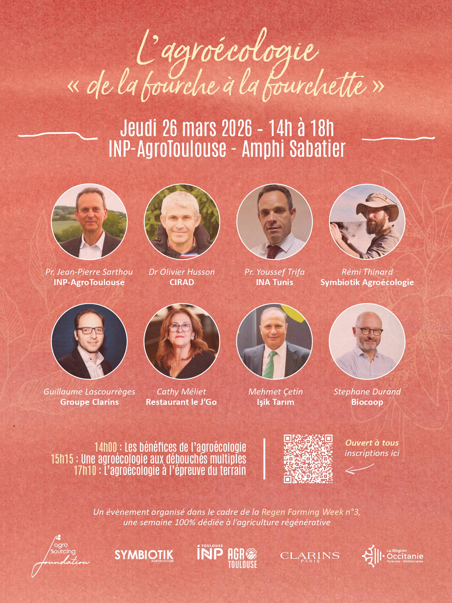 Dans le cadre de cette semaine, AgroToulouse accueille une après-midi de conférences le jeudi 26 mars 2026, de 14h à 18h, à l’amphithéâtre Sabatier.